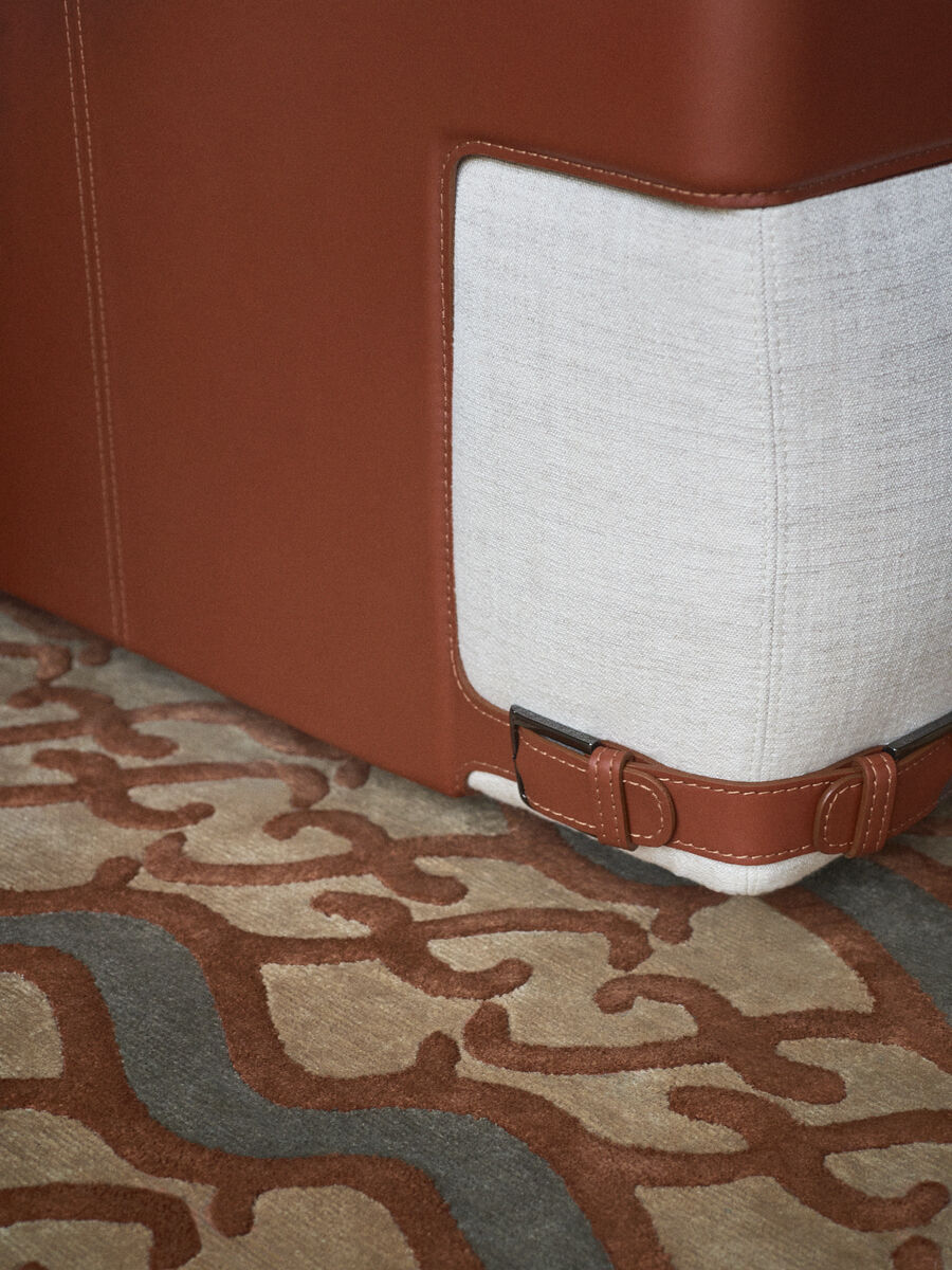 Hand-knotted in stunning natural silk, the Big Karl rug features a soft weave that is wonderfully tactile. The sinuous curves of the Karligraphy logo designed by Karl Lagerfeld intertwine in a pleasing combination of modern, harmonious tones. Available in three colour schemes: elegant light and dark blue, iconic brown and beige or the refined tones of burgundy and green.