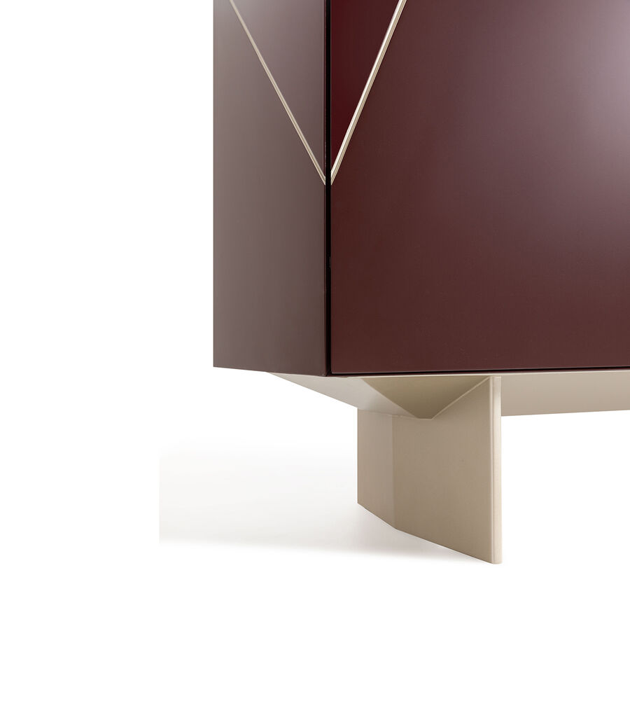 The visual expression of a refined style, the Selbit mobile bar, designed by Toan Nguyen, has a wooden structure with steel feet and leather handles with the FF logo. The facade, available in a choice of inlaid or lacquered finish, features a out-out motif inspired by Karl Lagerfeld’s Astuccio design. The cupboards and drawers together create the optical allusion of a single piece in this sideboard that effortlessly interprets the demands of contemporary living.