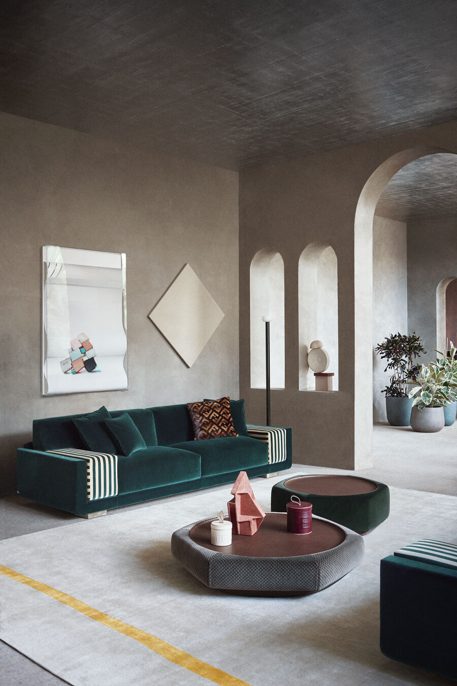 With its sculptural, inviting form and two- or three-seater versatility, the Parsifal sofa is destined to become an irresistible magnet in your home as the place to live, socialise or simply relax. The balanced proportions and rigorous geometry of the padded structure combine with oversize armrests in Pequin fabric to create a bold, eye-catching effect. The padding is designed to deliver exceptional comfort.