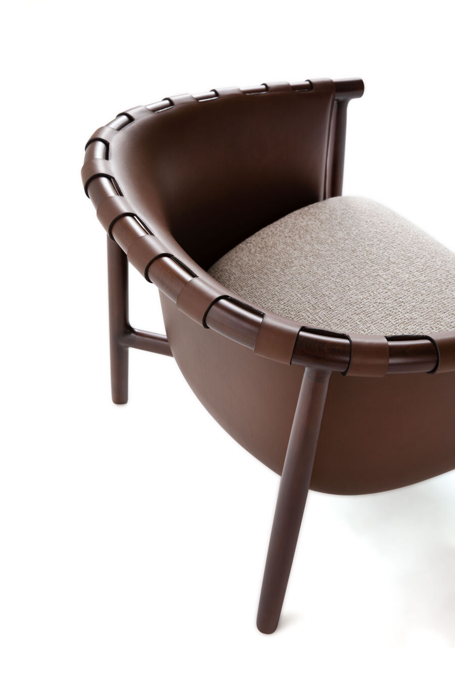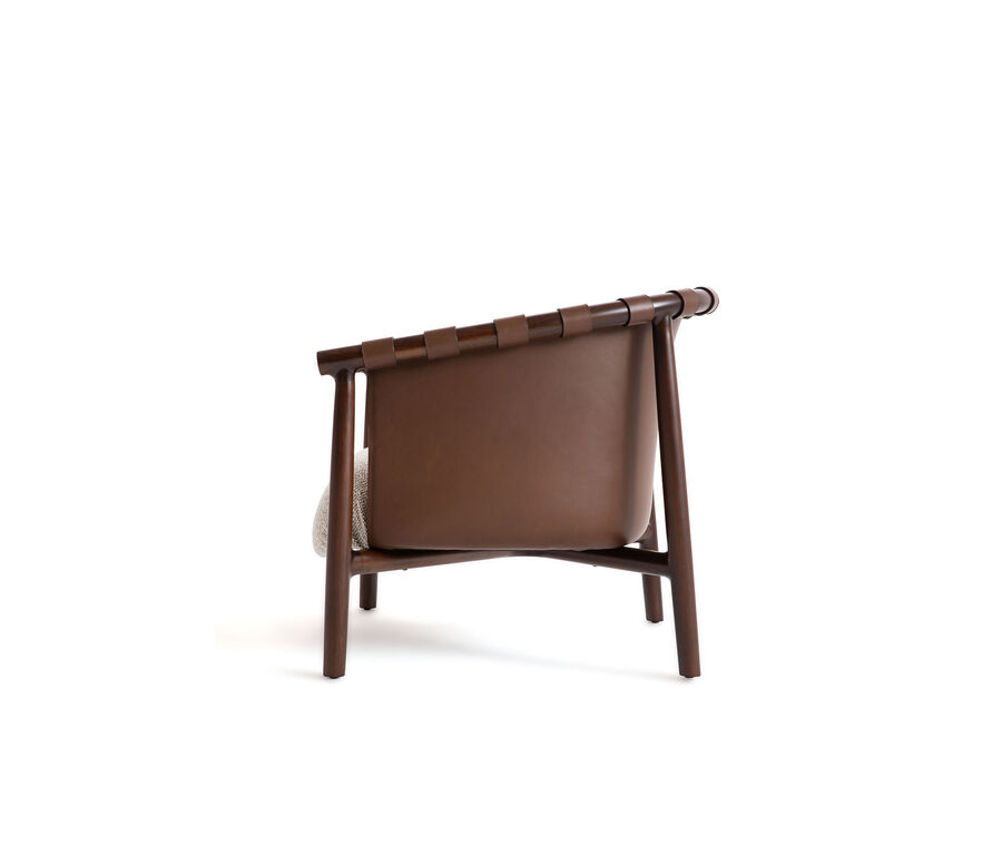 The Cleo chair and armchair seamlessly fuse the essence of contemporary design and the nostalgia of tradition. The pared-back design features a leather back that seems to embrace the wooden frame to recreate the effect of the iconic Pequin pattern. Ideal for both living and dining zones, it offers the allure of versatile seating and the pleasure of a sophisticated conversation.