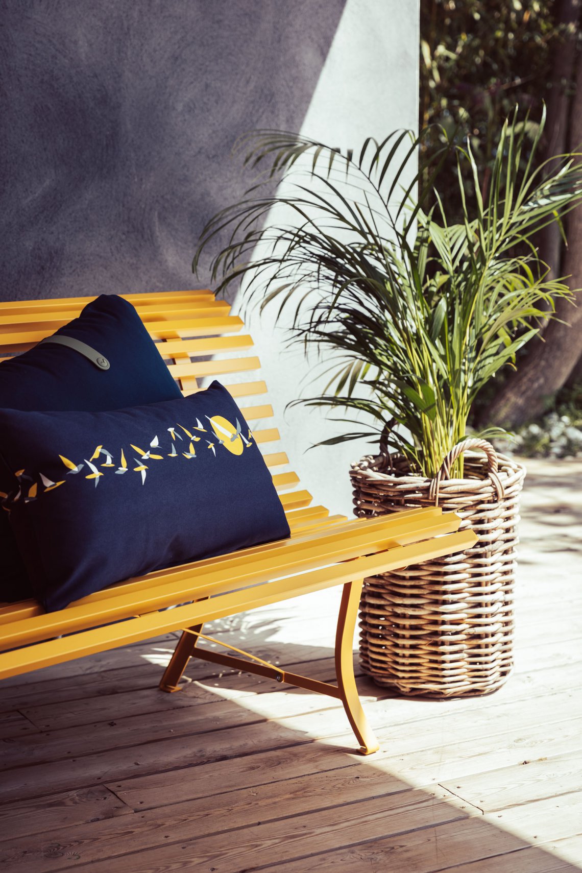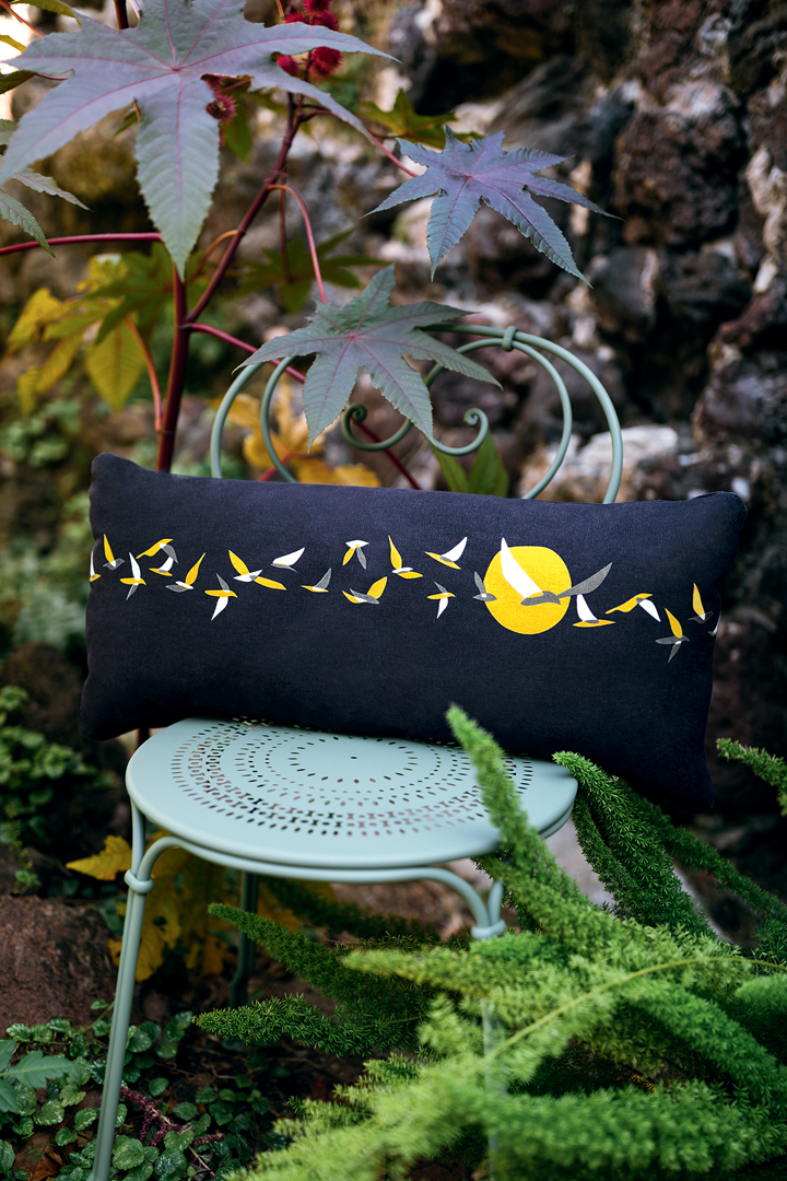 2 coloris et 4 formats pour les coussins de la collection Ava. Carrés ou rectangulaires, et toujours très déco. Leur composition en tissu imprimé 100% coton traité outdoor leur permet de vivre dehors, formant des ambiances poétiques et charmantes. à moins qu’ils n’habillent les mobiliers métal de la marque d’une touche colorée, quand les oiseaux redeviennent tout simplement des formes géométriques...