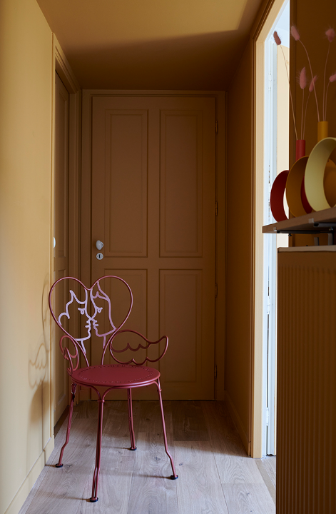 Le grand créateur Jean-Charles de Castelbaljac, plus familier des étoffes que du métal, mais qui partage avec Fermob le go?t du bel ouvrage, revisite l’iconique chaise 1900. Et le fait de manière très poétique