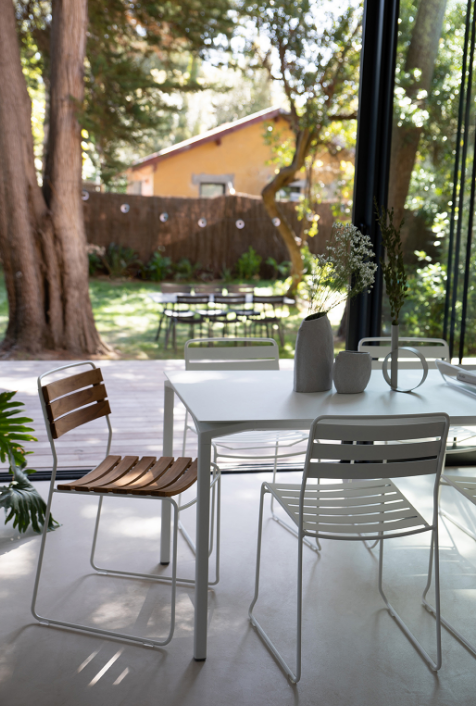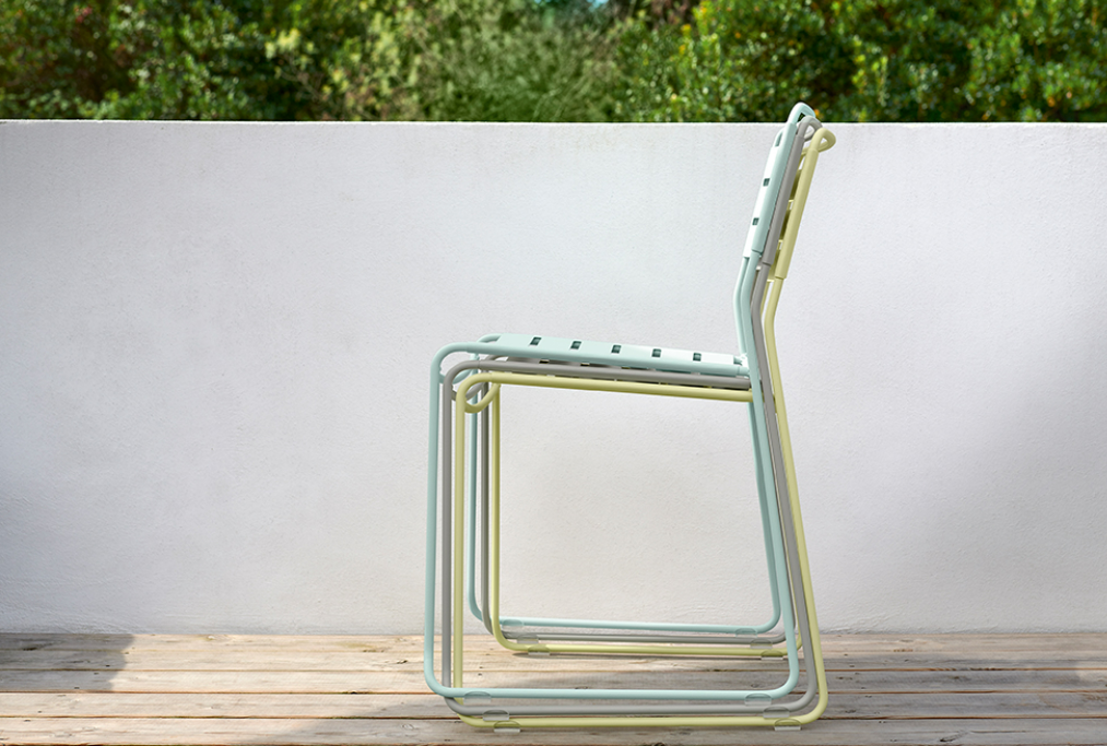 Une structure filaire associée à des lattes fines offrent à cette chaise un dessin très précis, simple et élégant. Cette chaise métal joue la convivialité et le confort avec un encombrement minimum.