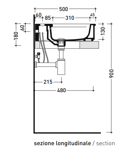 Basin 75 cm wall hung, countertop or suitable for pedestal