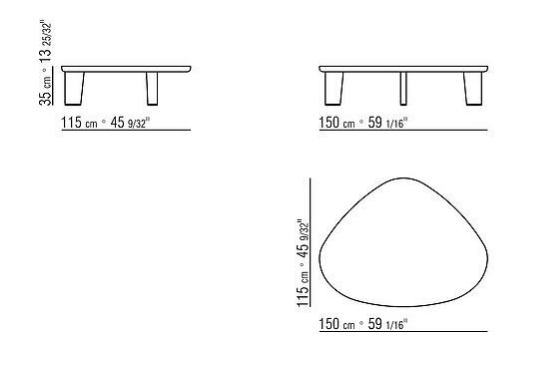 The design of the legs and their oblique placement lend an overall sense of dynamism. The density of the tabletop and of the legs adds solidity to the whole.