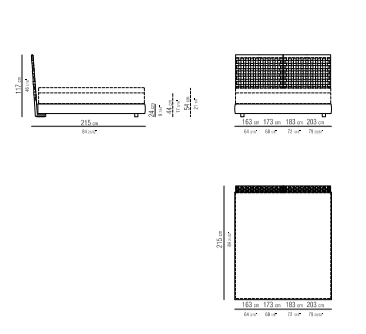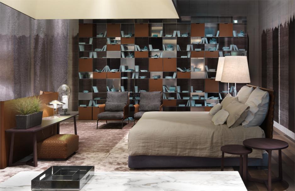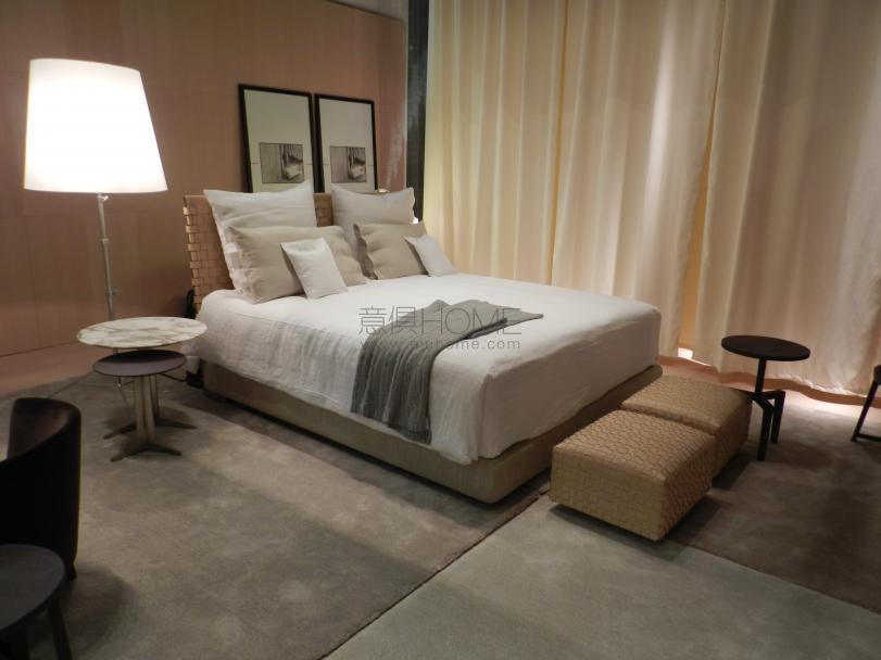 Cestone沙發所特有的設計與美學價值,也延伸至同名的床中。 床頭板由金屬框架構成,表面覆蓋著編織皮革。由此產生的“棋盤格”效果,具有強烈的視覺沖擊,與柔軟的填充床邊板形成賞心悅目的對比,后者可選用Flexform系列的所有織物或皮料作為面料。 Cestone床有不同尺寸供應,底座可選擇的款式包括:僅有床邊板、堅硬底座、高度可調節床板架底座與收納柜底座,收納柜可放置枕頭、被子與床品。