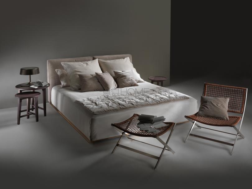 Grandemare床與同名沙發一樣,秉承低調的設計理念,但采用了豐富的設計方案,包括隱藏式的方案,使之呈現出卓越的品質。 寬大的床頭板呈幾何造型,線條柔和,放置在風格嚴謹的床板上,床板為木制,表面覆蓋皮革。 床頭板的面料可采用織物或真皮。 覆蓋面料均可拆卸,并配有同色或撞色對比的羅緞滾邊。 金屬邊框經過環氧粉末烤箱上釉,相對于皮革平板位置更靠后,令Grandemare床呈現出懸浮的觀感。