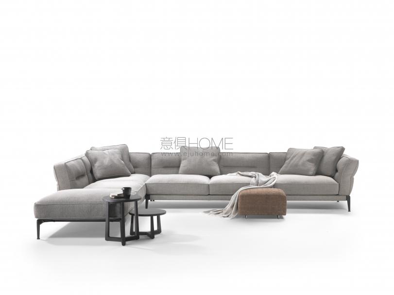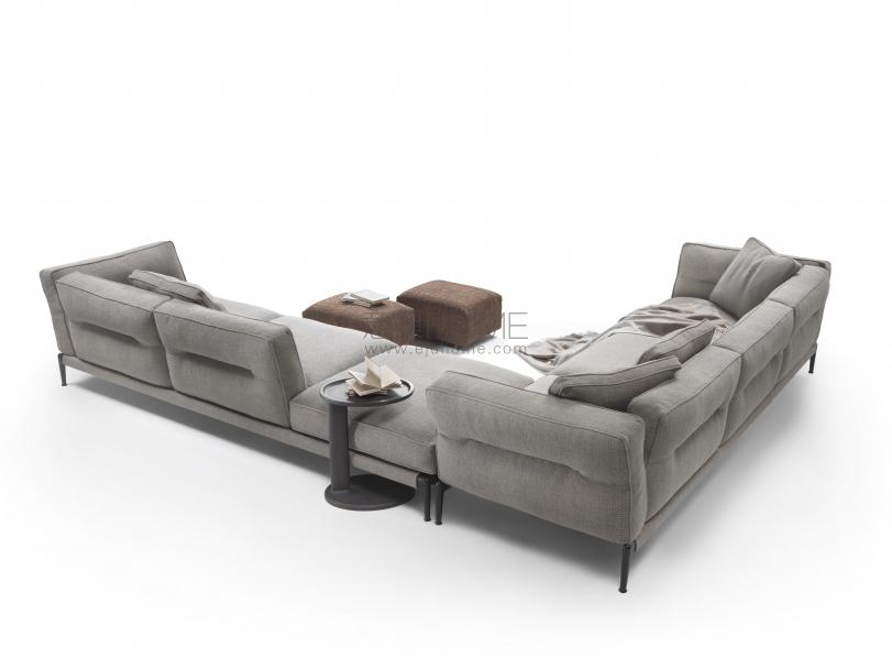 柔軟的扶手墊與靠墊通過(guò)簡(jiǎn)單有效的滑扣系統(tǒng)安裝在底座上。 靠墊中央有一道獨(dú)特的橫向縫線鎖緊, 在真皮或織物面料產(chǎn)生了輕微的紋路, 不僅遵循人體倚靠靠背時(shí)的自然曲線, 更為沙發(fā)賦予了與眾不同的特點(diǎn)。