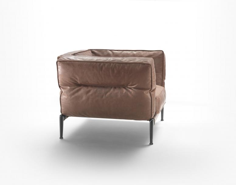 Adda扶手椅呈現與同名沙發系列同樣的簡潔當代特點。  輕盈的金屬結構,與豐厚的鵝絨填充椅墊形成對比,輪廓突出了柔軟包裹的形狀。此外,靠墊中央有一道獨特的橫向縫線鎖緊,在真皮或織物面料產生了輕微的紋路,不僅遵循人體倚靠靠背時的自然曲線,更為扶手椅賦予了與眾不同的特點。 Adda扶手椅以金屬底座托離地面,表面覆蓋真皮或織物,裸露的支腳采用壓鑄鋁材制造,顯示出紳士的一面,同時又絕對充滿當代風味。