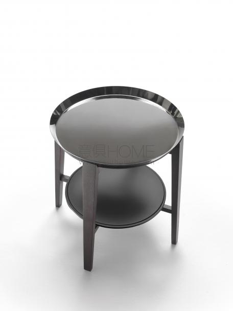 Cabaré茶幾優雅實用,可搭配Flexform系列的所有座椅。 茶幾呈圓形,具有精致的實木結構,可采用卡納萊托胡桃木或歐洲白蠟木,有多款顏色可選。兩層金屬疊加桌面,表面覆蓋皮革:下層桌面可放置書本和雜志。上層桌面上放置了實用的移動托盤,Cabaré茶幾的名字正是來源于此。 托盤以金屬制造,表面處理有磨砂、鍍鉻、磨光、黑鉻和香檳色,令Cabaré茶幾成為名副其實的客廳王者。