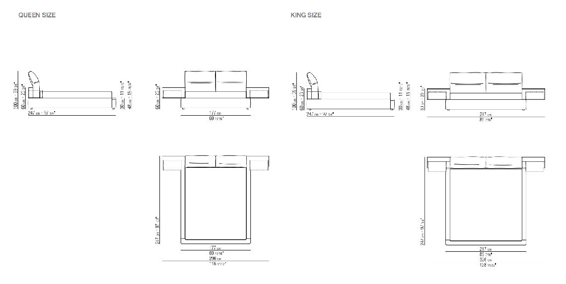 Newbridge床的特點在于簡約的金屬床頭板,呈獨特的C型截面,表面覆蓋皮革,配有實用的卡納萊托胡桃木或歐洲白蠟木擱板或抽屜,有多種表面處理工藝可選。 風格嚴謹的床頭板,與填料豐厚的床邊板和床頭靠枕形成對比。床頭靠枕可傾斜,為閱讀或看電視提供舒適的半躺姿勢。 Newbridge床有不同尺寸供應,底座可選擇的款式包括:僅有床邊板、堅硬底座、高度可調節床板架底座與收納柜底座,收納柜可放置枕頭、被子與床品。