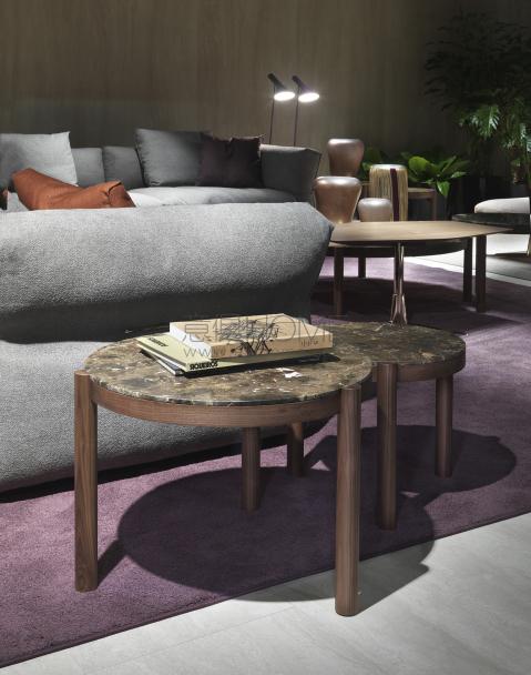 它是一個桌子和茶幾的集合,頗具設計感且非常實用。 細節考究,比如桌腿和桌面連接相當簡潔,去除了設計上的繁瑣。木石結合的材質使用十分講究,支撐部分使用胡桃木或歐洲白蠟樹木頭,桌面可以選擇各種大理石:白色Carrara,黑色Marquina,金色Calacatta和Emperador。 想到這個系列的一些理想元素,Gustav小桌子展現出自己鮮明的特色和態度,它既可以單獨呈現,也可以多個放在一起,能夠很好地迭合使用。