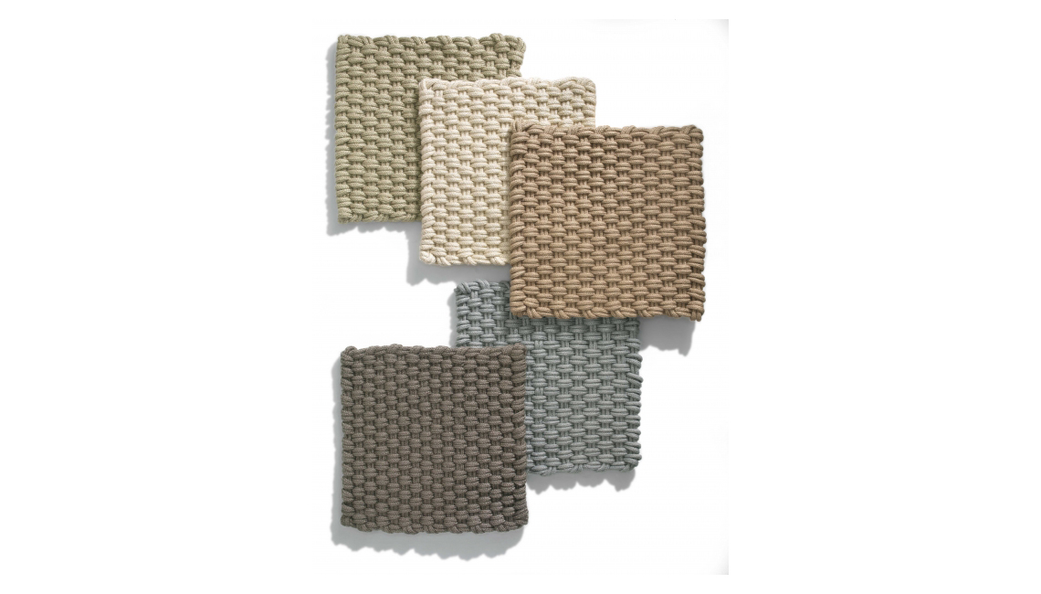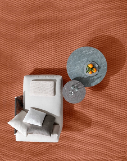 Colorado地毯采用特別的手工編織塑料制作,這種材料來自PET塑料瓶的循環(huán)再用。這是一種防水透氣的材料,使得Colorado地毯可放置于戶外環(huán)境,例如陽光房和露臺。Colorado地毯為定制產品,該系列具有多種顏色,可與戶外系列的織物顏色一致。