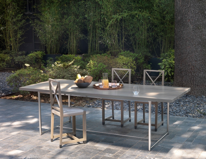 這款午餐桌的特點是追求簡約的設計,以及有趣的材質對比:316奧氏體不銹鋼底座的肅穆,搭配大綠柄桑木芯材板條桌面的溫暖質感,桌面顏色有天然、白漆或灰色。 鋼材底座也提供環氧粉末噴漆的表面處理,可選白色、卡其綠、酒紅色和磨光。