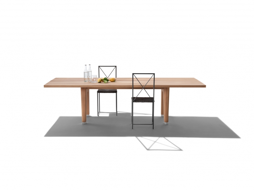Monreale桌子問世兩年之后,F(xiàn)lexform如今推出它的戶外版本,完全采用大綠柄桑木制造,溫暖的質(zhì)感結(jié)合出色的抵御天氣因素能力,為Monreale Outdoor桌子賦予了強大的個性。 Monreale Outdoor桌子的每一個結(jié)構(gòu)細(xì)節(jié),都顯示出簡單外表之下的復(fù)雜構(gòu)成:粗大而簡約的桌腿采用大綠柄桑木芯材,突出了這款桌子特有的高貴與低調(diào)氣質(zhì)。壓鑄合金支腳插在桌腿末端的銑削部件和尼龍橡膠內(nèi),可保護木材,避免與地面直接接觸。 桌面采用大綠柄桑木芯材板條,提供天然版本或灰色和白漆版本。