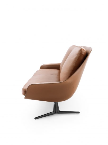 Sveva扶手椅的優(yōu)雅輪廓與寬大包容的造型,如今延伸到同名沙發(fā)身上。 環(huán)繞貼身的外殼由硬結(jié)構(gòu)聚氨酯制成,真皮表面,坐墊松軟,靠背以鵝毛填充。 沙發(fā)精致的底座用壓鑄鋁制成,表面處理有磨砂、鍍鉻、磨光、黑鉻和香檳色。 正如扶手椅,Sveva沙發(fā)也可以在色彩多元的皮革表面與織物或真皮椅墊之間創(chuàng)造出多不勝數(shù)的原創(chuàng)搭配。 由于比例緊湊,Sveva沙發(fā)適宜裝飾家居或酒店,賦予同樣的風(fēng)格和優(yōu)雅。