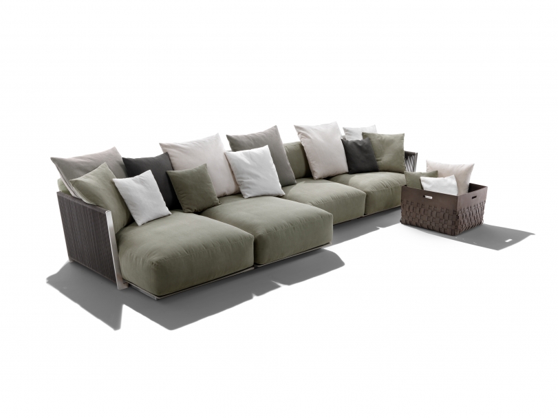 Flexform特有的編織主題在過去啟發了多款戶外產品的設計,如今構成了Vulcano座椅系列的個性紋理。品牌主打的組合靈活性,個性定制的高度可能性,結合對材質的熱切鉆研,保證了在戶外環境的卓越表現,這一切正是Vulcano沙發的設計基礎。 沙發的底座采用航海復合板制作,而扶手與靠背結構則是316奧氏體不銹鋼,這種超級合金可保證高水準的戶外性能。沙發表面覆蓋著考究的聚丙烯纖維或聚氨酯橡膠編織,色調精致,包括中性色、波爾多色和橄欖綠。 沙發下方是一個316奧氏體鋼框架,帶有尼龍橡膠支腳。 為了確保最佳的戶外表現,椅墊的所有填料都覆蓋了特別的防水透氣椅套,而豐富的面料選擇則可保證出色的抵御能力,不僅可應對天氣因素和紫外線,還可耐受氯和鹽的侵蝕。 強烈建議使用專門的防水椅套,保持Vulcano沙發的良好狀態,盡量維持原狀。