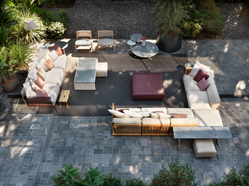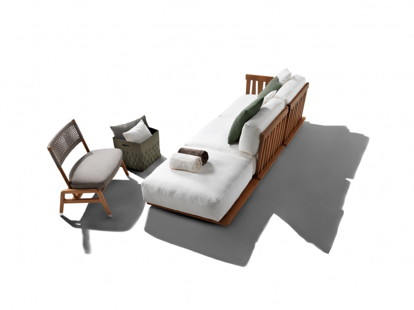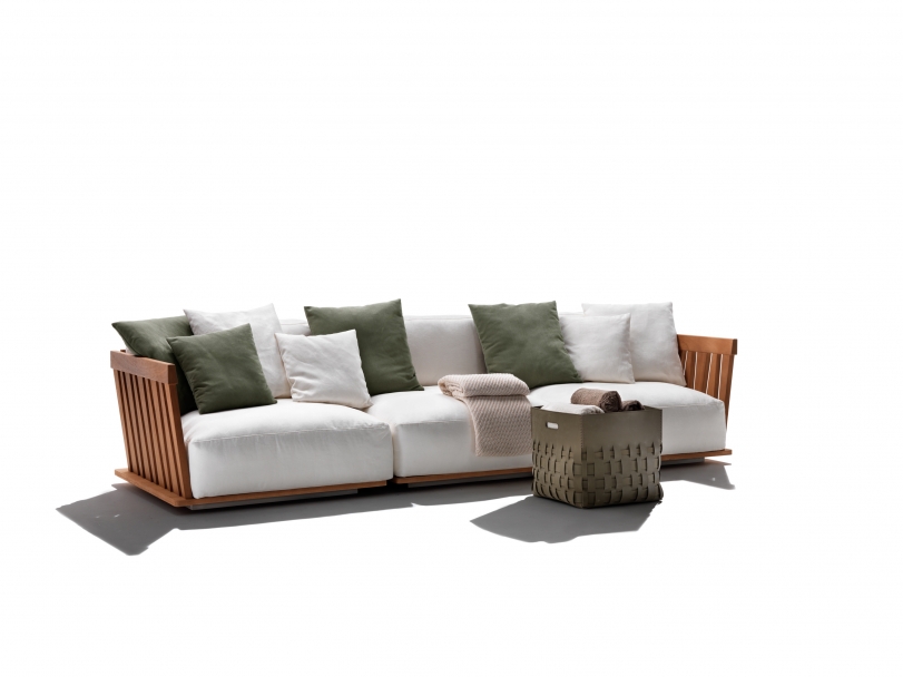 Zante是一套專為戶外環(huán)境設(shè)計(jì)的座椅系列,提供兩種深度,在組合方面具有極佳的靈活性。它用途廣泛,不同元件的拆卸非常簡易,在季末或有需要時(shí),可以疊加收藏于隱蔽之處。 大綠柄桑木對(duì)天氣因素具有高度的防御能力,其與生俱來的美感與品質(zhì),啟發(fā)了這個(gè)戶外座椅系列的構(gòu)思,一如Flexform的優(yōu)秀傳統(tǒng),結(jié)合了低調(diào)優(yōu)雅與高度舒適,用以裝飾露臺(tái)與陽光房,可與室內(nèi)環(huán)境保持絕對(duì)的一致。 Zante沙發(fā)的底座完全采用Okumè木航海復(fù)合板制作,帶有透氣孔,讓椅墊獲得良好通風(fēng)。上部的大綠柄桑木鑲板,搭配完全以大綠柄桑實(shí)木芯材制作的扶手與靠背結(jié)構(gòu),獨(dú)有不規(guī)則條紋和手工鑲嵌。沙發(fā)下方是一個(gè)316奧氏體鋼框架,由 尼龍支腳托離地面。隨著時(shí)間推移,大綠柄桑木會(huì)變得“滄桑”,逐漸變成特別的灰色。正是這種精致色調(diào),啟發(fā)了Flexform大綠柄桑木的表面處理工藝,除了灰色外,還提供天然和白漆的版本。 Zante是一款休息而包容的沙發(fā):坐墊與椅墊都帶有豐厚的填充料。為了確保最佳的戶外表現(xiàn),所有填料都覆蓋了特別的防水透氣椅套,豐富的面料選擇可保證出色的抵御能力,不僅可應(yīng)對(duì)天氣因素和紫外線,還可耐受氯和鹽的侵蝕。強(qiáng)烈建議使用專門的防水椅套,保持Zante沙發(fā)的良好狀態(tài),盡量維持原狀。
