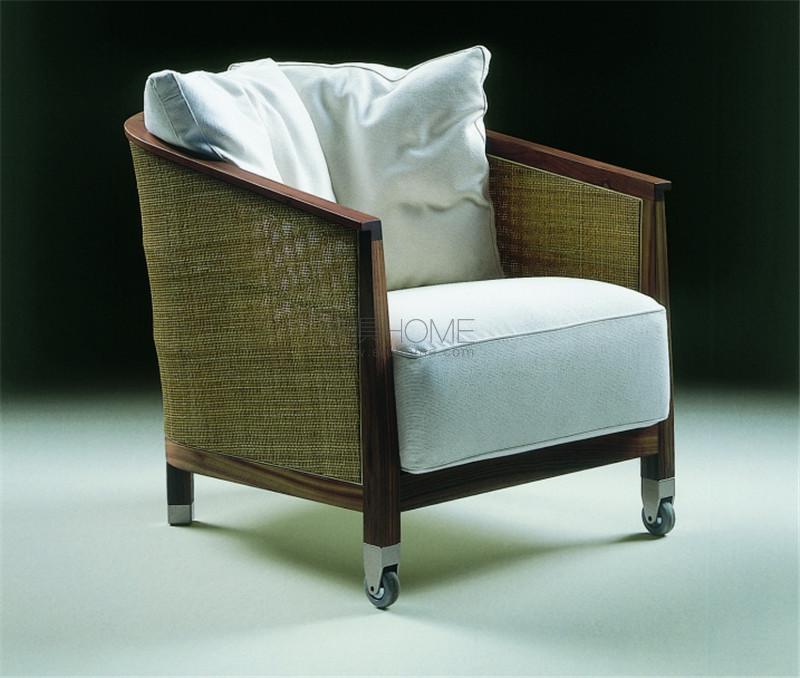 Mozart是一款優(yōu)雅的室內(nèi)扶手椅,自帶戶外風(fēng)情,隱約散發(fā)著殖民地時(shí)代的記憶。優(yōu)雅結(jié)實(shí)的金屬與木材結(jié)構(gòu),可選用多種色彩的卡納萊托胡桃木或歐洲白蠟?zāi)荆e出心裁地使用了編織燈芯草,賦予了不同尋常的優(yōu)雅。豐厚的填料保證了舒適感:坐墊采用聚氨酯與滌綸填料,靠墊則以滌綸和鵝絨填充。Mozart扶手椅配有實(shí)用的前輪,可輕易移動(dòng)。