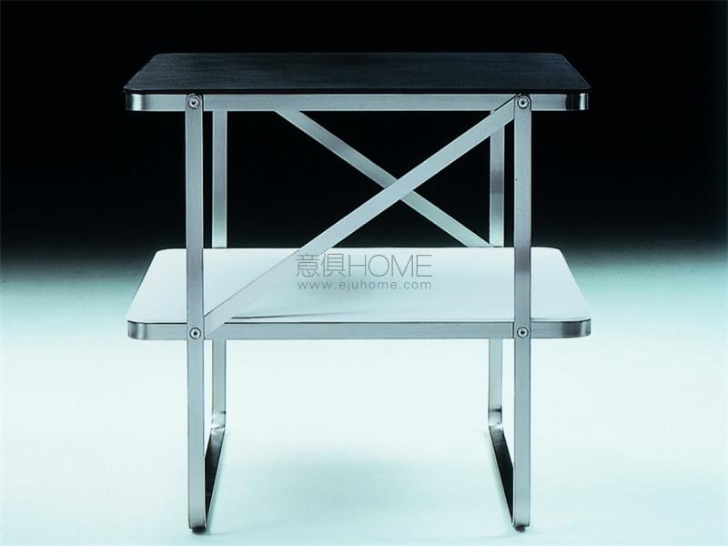 這是一款實用的茶幾,設計雋永,靈感源自包豪斯學派。 金屬結構表面處理工藝有鍍鉻、磨砂、磨光、黑鉻與香檳色可選,突出了接合處的螺絲,彰顯了這款茶幾特有的簡潔嚴謹設計。 圓桌版本有兩層擱物桌面,方桌版本則只有一層,均可采用卡納萊托胡桃木或歐洲白蠟木制造,有多款顏色可選,或可選用色調精致的漆面。