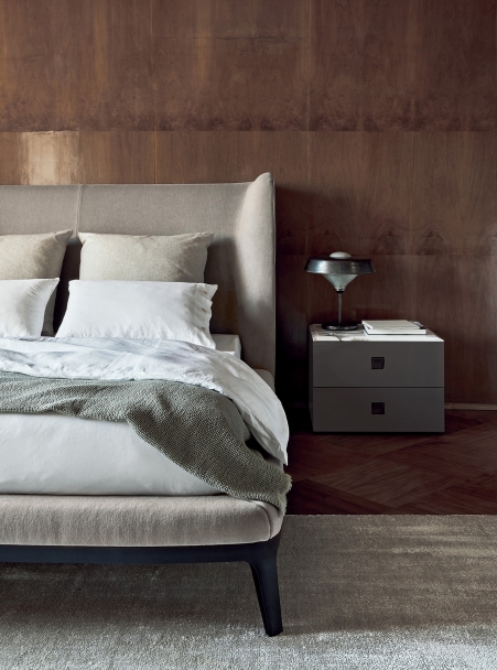 這個(gè)家具系列包括垂直收納柜、屜柜和床頭柜,把名貴材質(zhì)的簡(jiǎn)潔線條與考究的結(jié)構(gòu)細(xì)節(jié)結(jié)合在一起。 框架與門(mén)板和抽屜均為歐洲白蠟?zāi)局圃欤砻嫱坑心ㄉ疗幔_(tái)面采用大理石,并切割為獨(dú)特的鉆石型,金屬把手表面處理工藝有磨砂、鍍鉻、黑鉻、磨光、鍍銅和香檳色,為這些收納柜帶來(lái)高貴精致的特點(diǎn)。