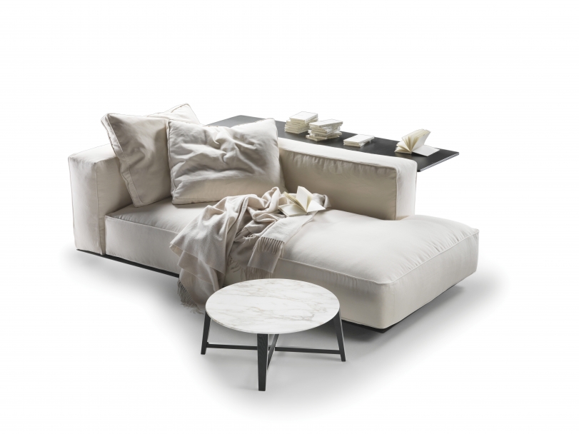 Grandemare貴妃椅是柔軟幾何體的匯集,放置于皮革覆蓋的木板上。  線條純粹簡潔,無一筆冗余,讓絕對舒適成為它存在的理由。 座椅、扶手與靠背的覆蓋面料邊緣帶有一道羅緞滾邊,可采用同色或撞色對比。  金屬邊框經過環氧粉末烤箱上漆,相對于皮革平板位置更靠后,令Grandemare貴妃椅呈現出懸浮的觀感。