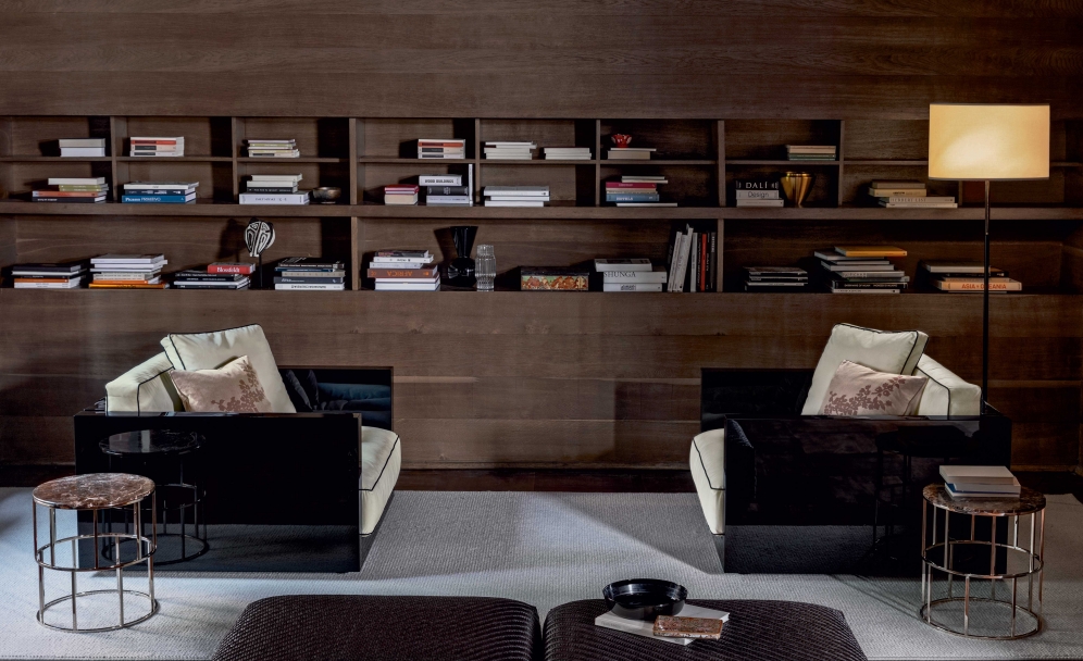 Lucien座椅系列如今加入了同名的扶手椅。 正如沙發一樣,Lucien扶手椅的靈感也是來自現代主義的建筑,扶手與靠背外部的光亮漆面突出了其嚴謹線條與方正造型。 椅墊和靠墊的鑲邊采用對比色,添加個性,突出了扶手椅的幾何設計。