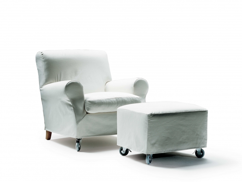 Nonnamaria扶手椅,如同所有的家族沙發系列一樣,汲取了古典沙發的造型,以當代手法重新演繹。 它呈現出親切舒服的外觀,既從屬于集體記憶,又擺脫了無用而繁重的裝飾細節。椅套是簡約的易拆卸面料,為Nonnamaria扶手椅平添清新輕盈的魅力。 Nonnamaria扶手椅的靠背后配有實用的把手,前方有自剎車輪子,方便移動。可搭配同名沙發凳,后者同樣配有輪子。