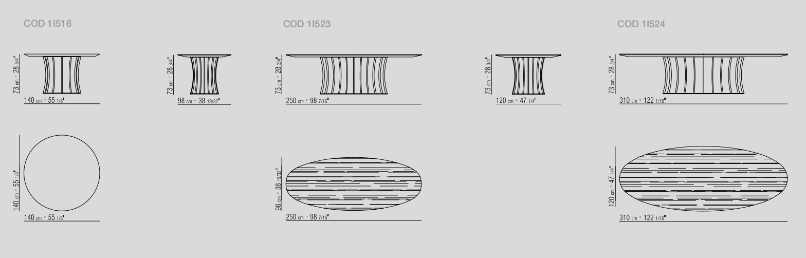 Arthur系列包括桌子與茶幾,空靈的金屬底座設計考究,承托起圓形或橢圓形的臺面。 造型性感,表面處理工藝豐富多樣,Arthur桌子展現出令人眼前一亮的個性特點,金屬底座與臺面可呈現不同的組合,底座表面處理工藝有磨砂、鍍鉻、黑鉻、磨光、鍍銅和香檳色,而桌面則有多種精致顏色的天然橡木款或名貴大理石款。