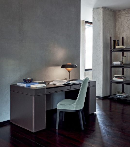 Conway是一款高貴的寫字臺,采用歐洲白蠟木實木結構,可漆成不同顏色,表面完全覆蓋皮革。考究的裸露縫線,令人想起馬具傳統,展現出品牌工藝素有的精致細節品味。Conway寫字臺配備了使用的實木抽屜,正面覆蓋皮革。Conway是一款重要的配飾,行家會懂得欣賞其精美的構造細節,它在家居中的不同環境都能找到恰到好處的位置:書房,臥室,乃至客廳的角落。