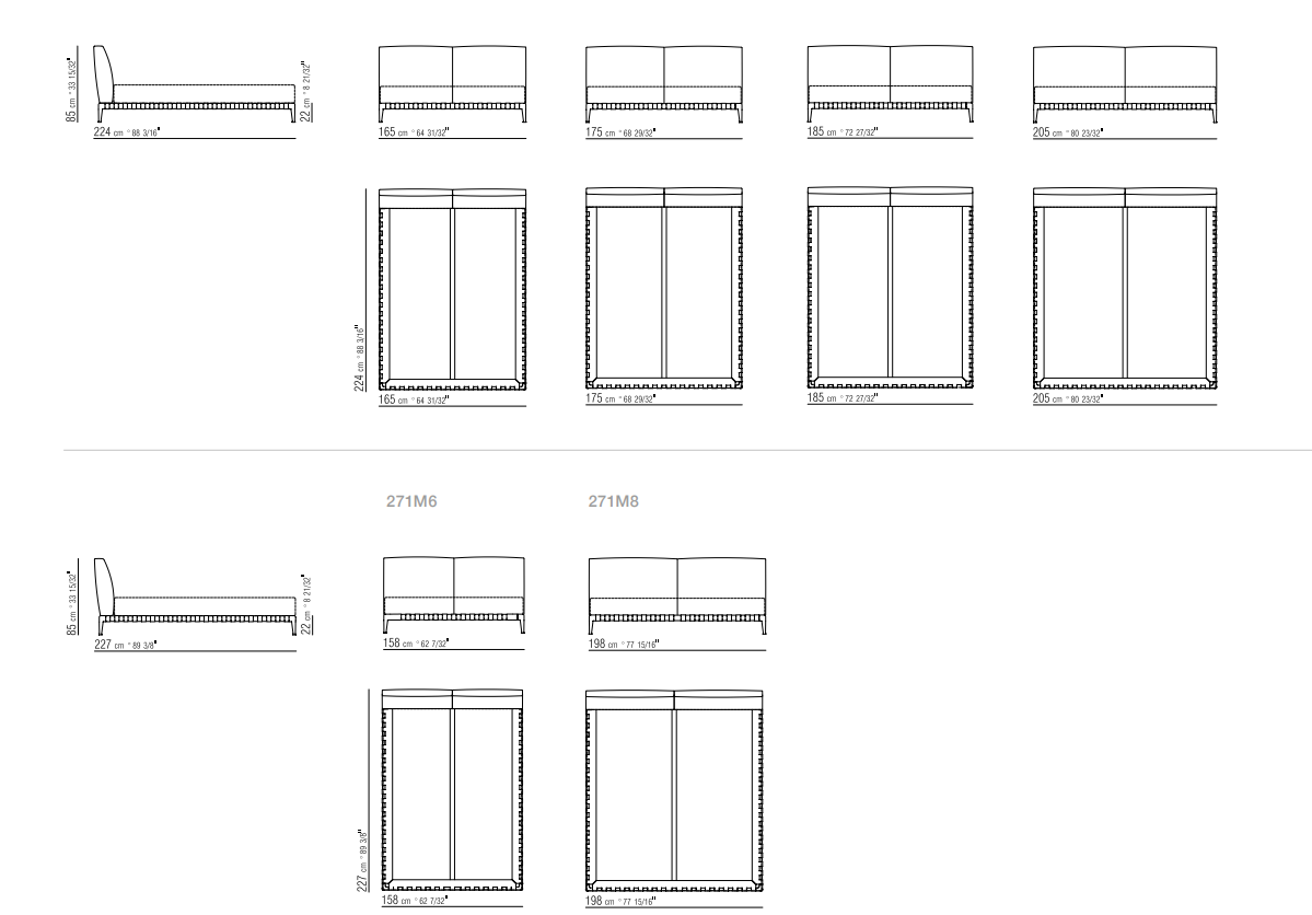 完全可移動的床頭板內飾可以用織物或皮革定制,并以優雅的色調或對比色羅緞線條突出。
