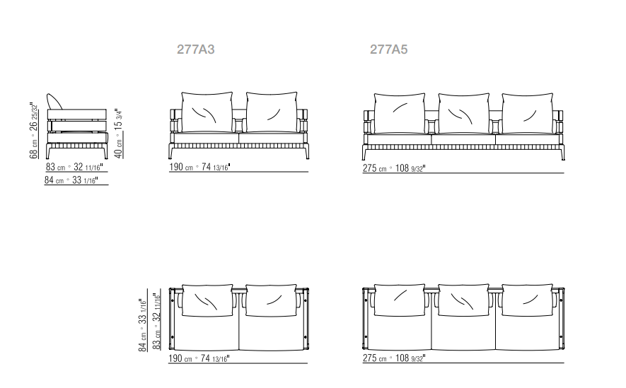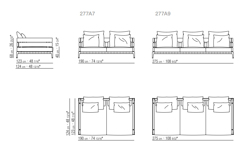 Ansel沙發有兩個座位深度(84和124厘米)以及兩個和三個座位的版本。