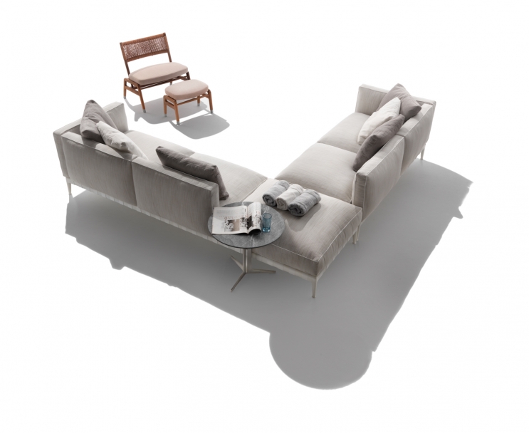Atlante沙發采用現代風格。軟墊坐墊的大尺寸抵消了金屬結構的緊縮感,優雅的羅緞滾邊勾勒出其柔和而溫馨的形狀。