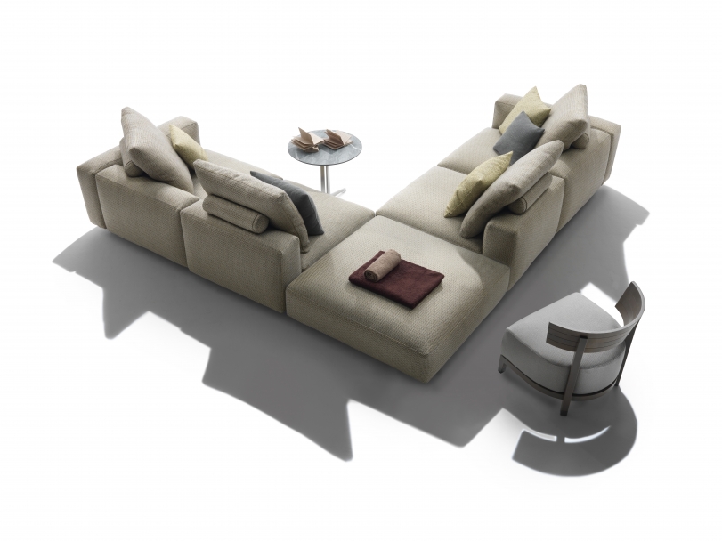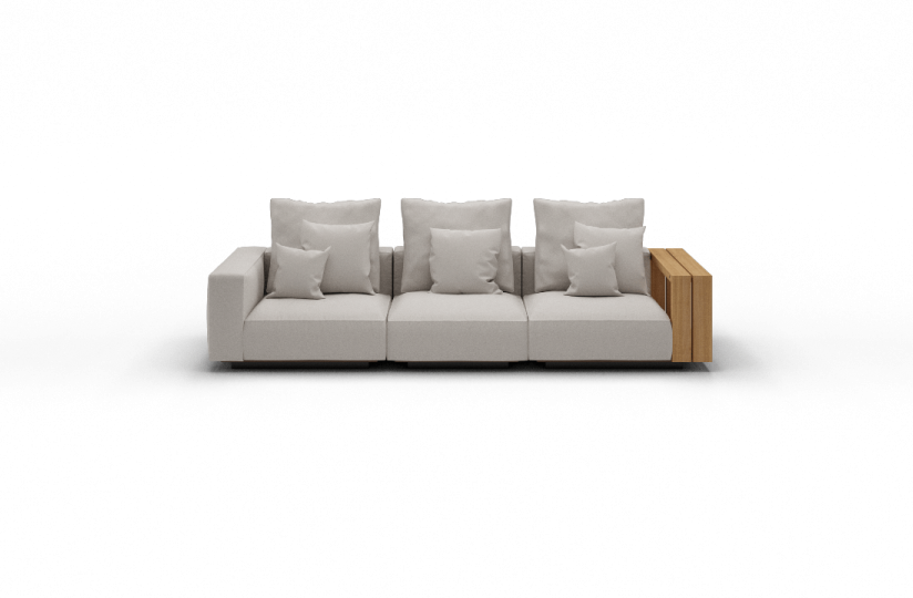 Grandemare戶外座椅系統具有模塊化的特點,可鼓勵各種可能的布置方式,并且可以搭配由實心iroko板條和光滑的金屬合金墊片制成的同名咖啡桌。