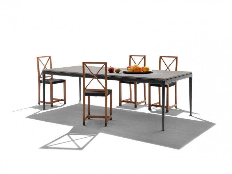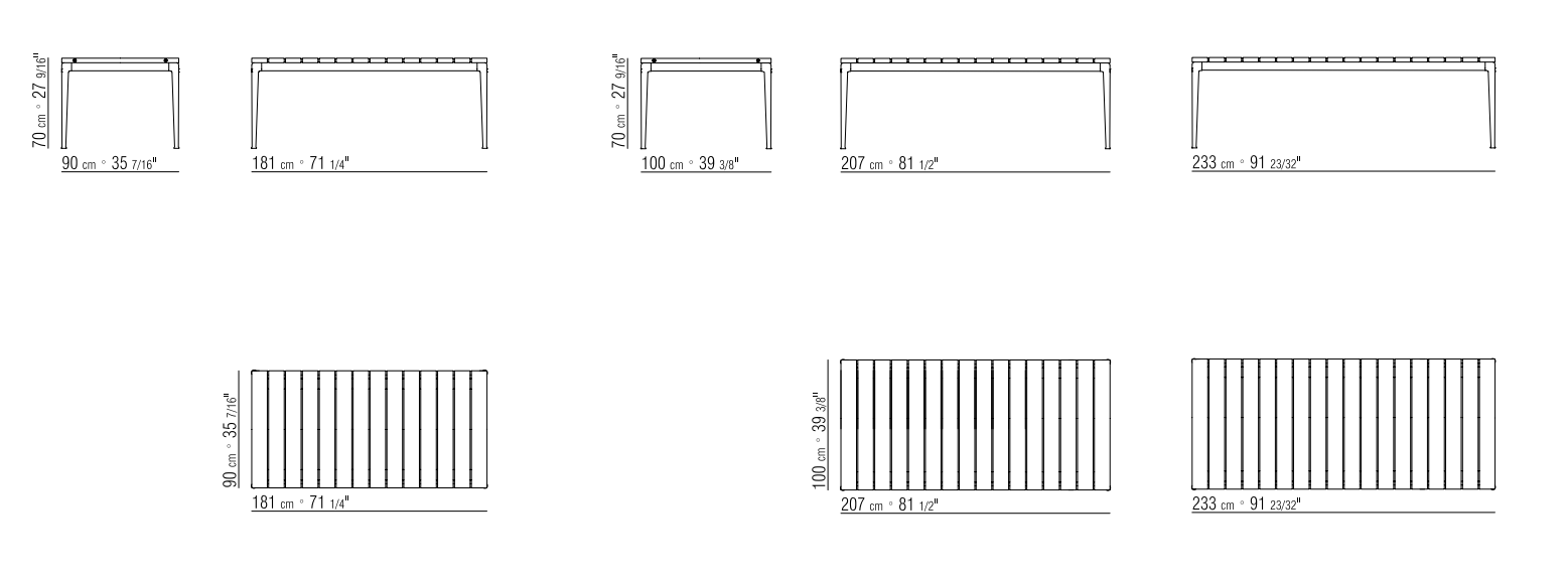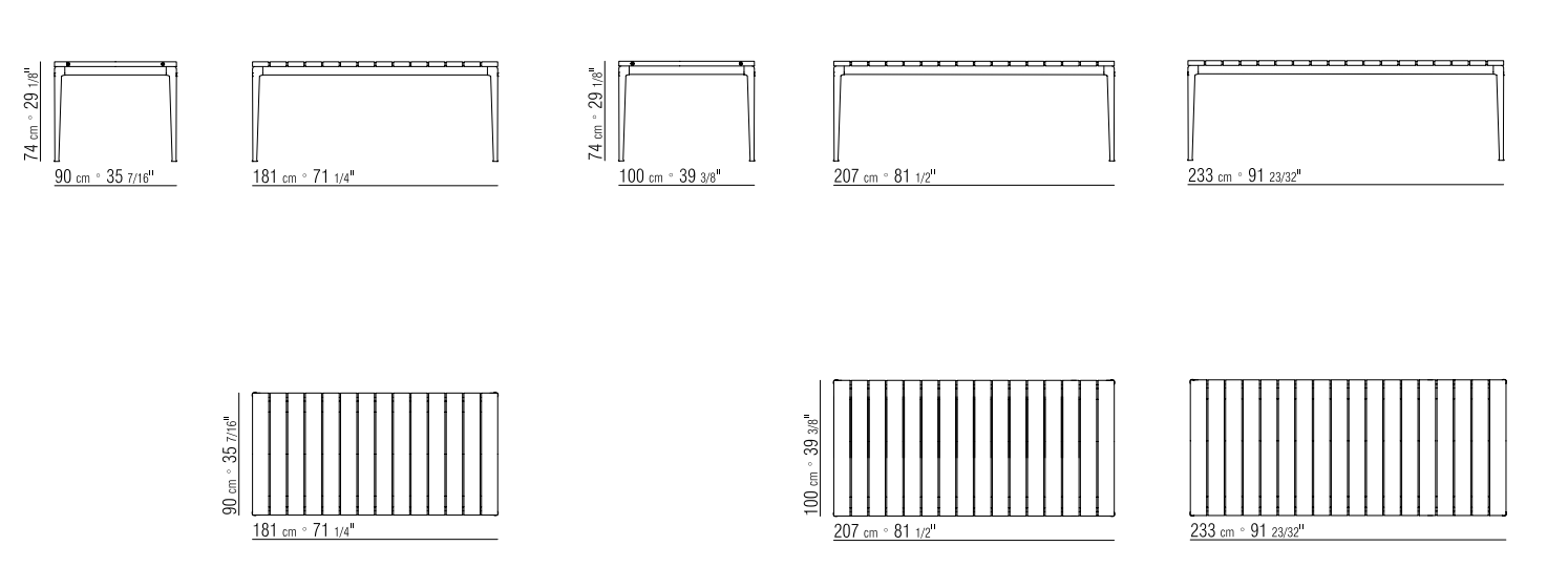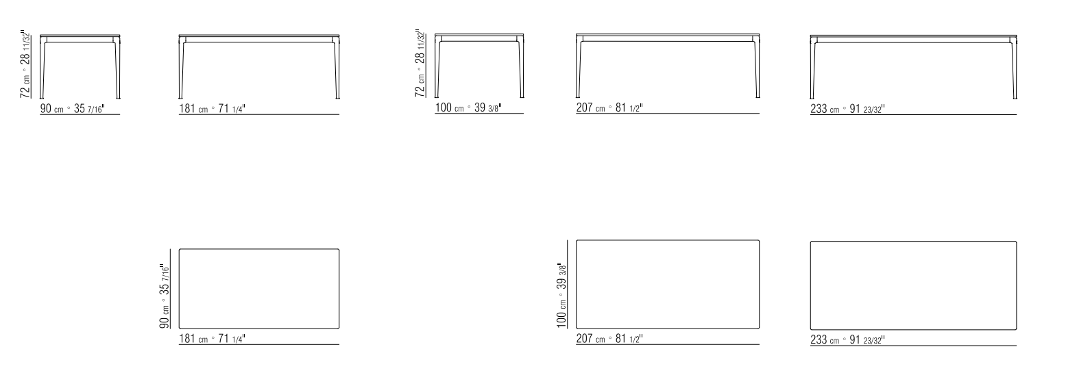 優雅的錐形腿由鑄鋁制成,并具有一系列精致的環氧粉末涂料飾面顏色。無鋒利的桌面可提供帶有iroko木板條的版本,或以下類型的石材:Beola Argentata,Pietra del Cardoso,Lava和Porphyry。