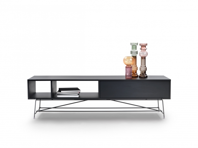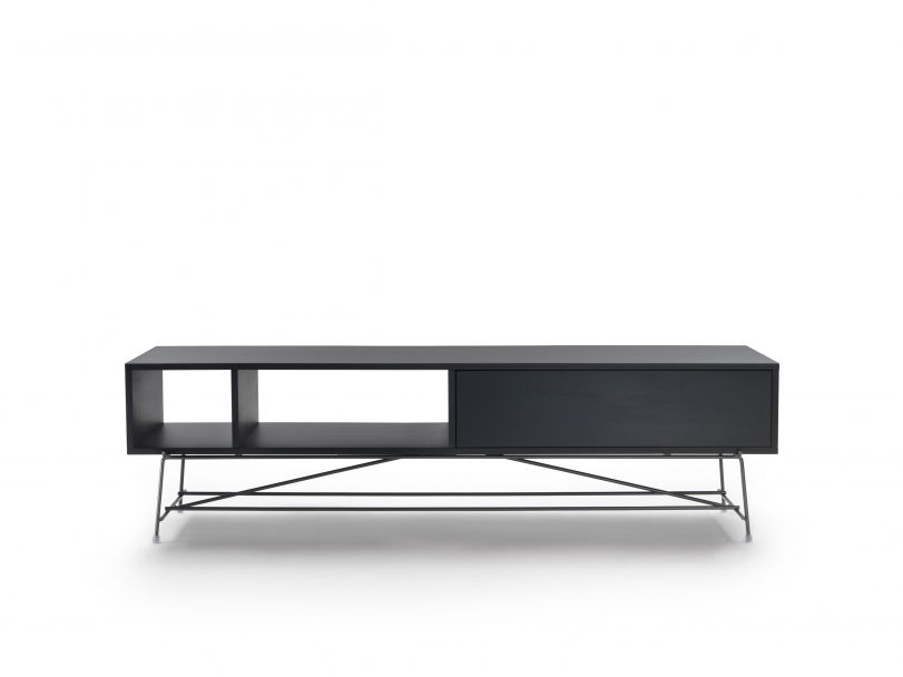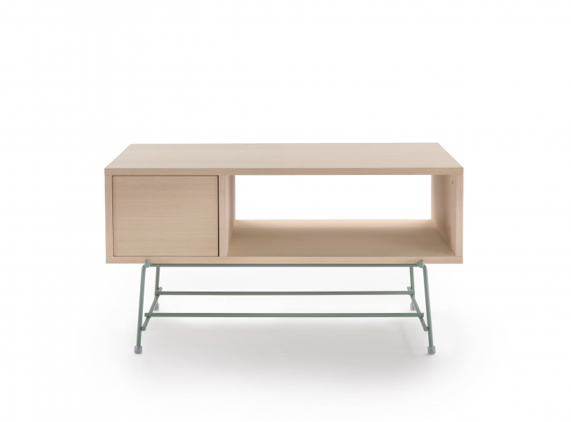 The basic idea was to set a piece of wood on a simple metal structure. The first items to grow out of this concept were a coffee/side table and a console, followed by a dining table, desk and a series of cabinets.