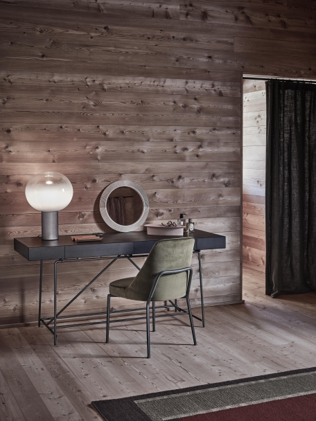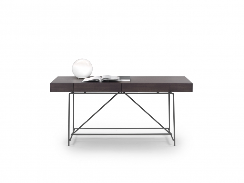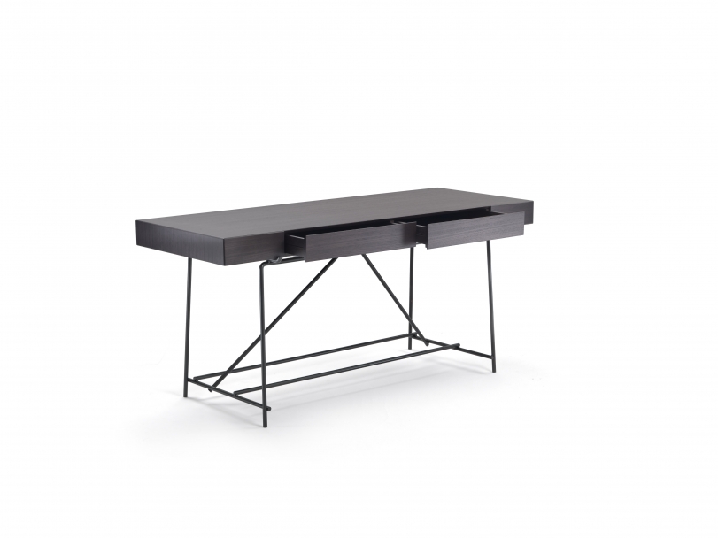 The basic idea was to set a piece of wood on a simple metal structure. The first items to grow out of this concept were a coffee/side table and a console, followed by a dining table, desk and a series of cabinets.