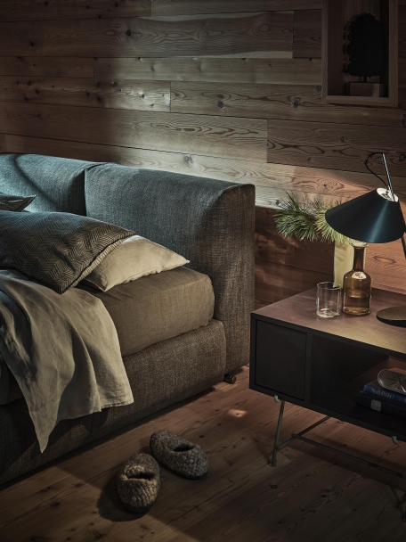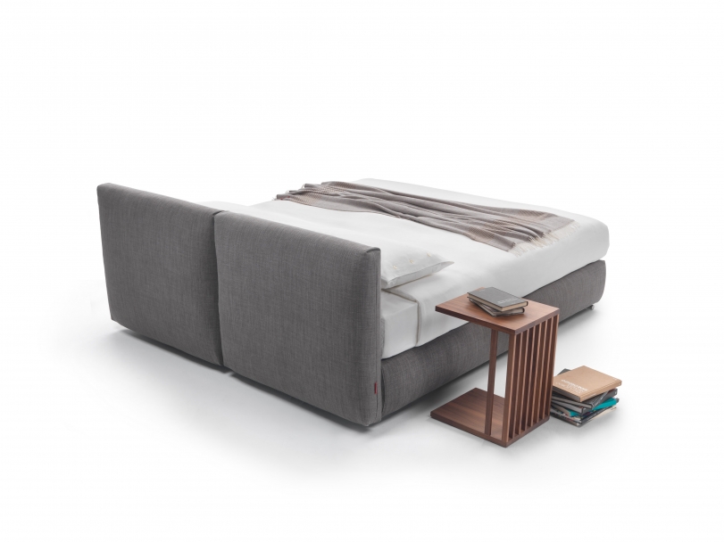 The headboard comes in two different depths and features a unique fold-over design, an elegant construction detail that clearly indicates how the talent for tailoring is an integral part of the company’s DNA.