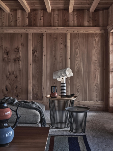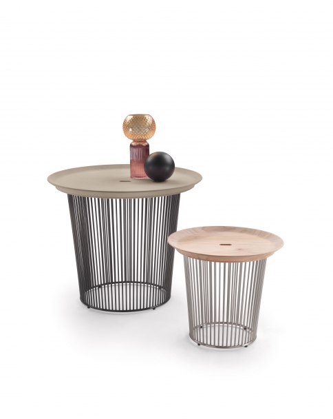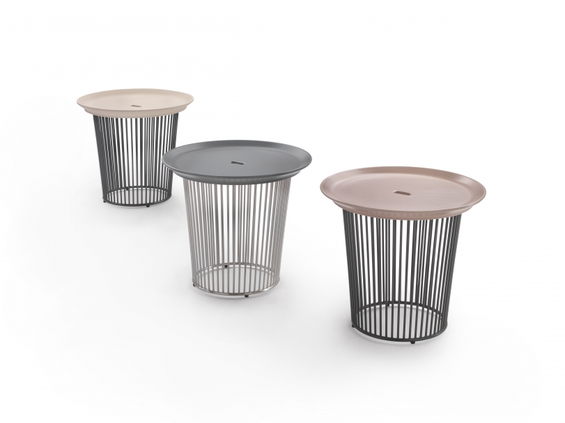 The Berry coffee and side tables come with top in solid cedar of Lebanon with natural finish, or in ceramic stoneware, a composite material with excellent resistance to wear, scratches and stains.