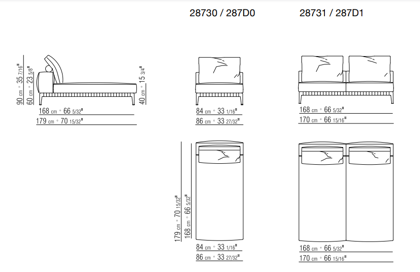 Just like the couture tailoring of the grosgrain piping that outlines the soft cushions, this formal-aesthetic solution traces back to the expertise that lies at the core of the company’s genetic legacy. The goose-down-filled backrest cushions and bolster noticeably improve comfort and promote proper ergonomics while enjoying a good read.
