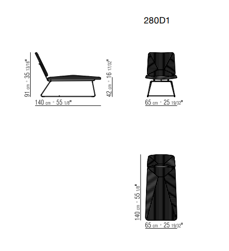 The design concept is based on a bold material contrast: the structure is in sleek stainless steel while the seat and backrest are made of fine woven matt polypropylene cord in natural, ice, straw or anthracite colors.