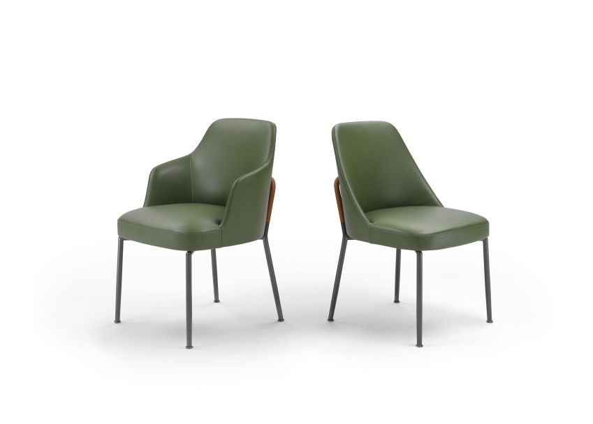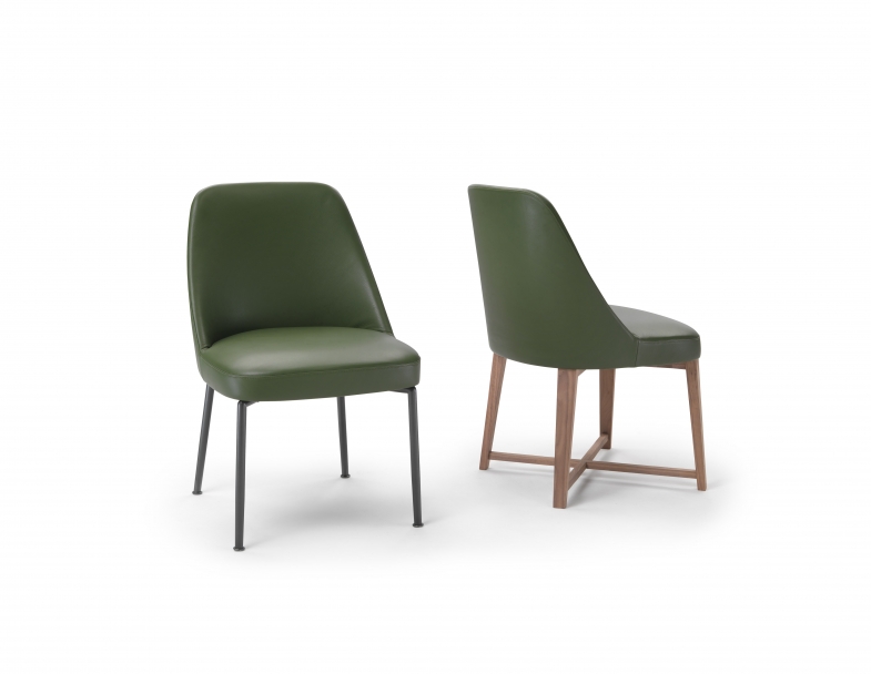 The enveloping shell of the dining chair is in metal and polyurethane foam while the base is available in an array of versions whose design roots trace back to different stylistic interpretations and even different uses.