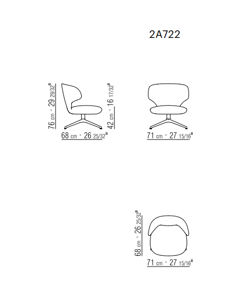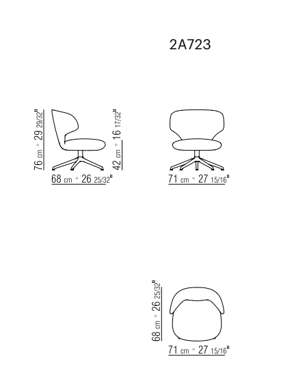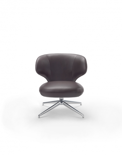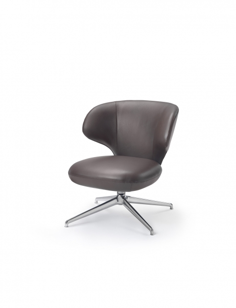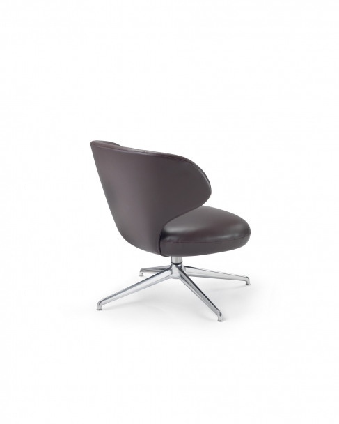 Slender and sleek, the Susanne small armchair sits on a metal stationary or swivel base.