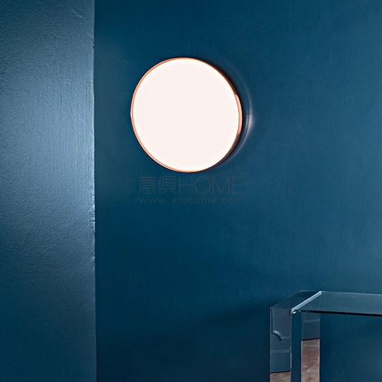 Ceiling/wall lighting fixture, providing diffused light. The front diffuser is made of high efficiency, injection moulded opal Polycarbonate. Ceiling/wall fitting is in injection moulded polycarbonate. Dimmable Led light source powered without the use of any power supply/transformer, but directly by the mains voltage (220-230 V AC). For decorative purposes an optional accessory made of PC and ABS+PC is made available in 4 different finishes: chrome, copper, black fumée and transparent.