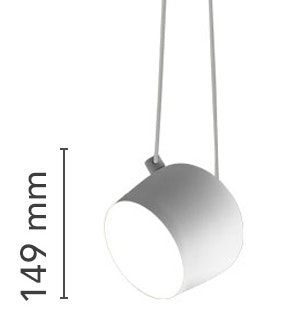 Suspended light fitting. Body in varnished aluminium sheet, shade in photo-etched optical polycarbonate. Internal reflector in photo-etched ABS. Orientable body. Powered directly from mains. The LED can be dimmed with a ?Triac for Led? dimmer approved by Flos.Flos does not respond in case of wrong electrical connection system installations. The cable has a useful length of 9 meters and thus the lamp can be suspended 3 meters from the ceiling. Multiple rose with capacity to connect up to 5 Aims also available.