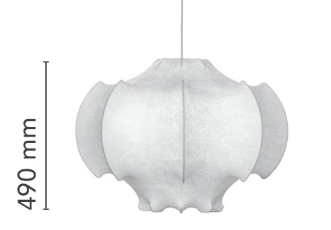 Suspension lamp providing diffused light. White powder coated internal steel structure sprayed with a unique cocoon resin to create the diffuser which is then protected by a transparent sprayed on finish.
