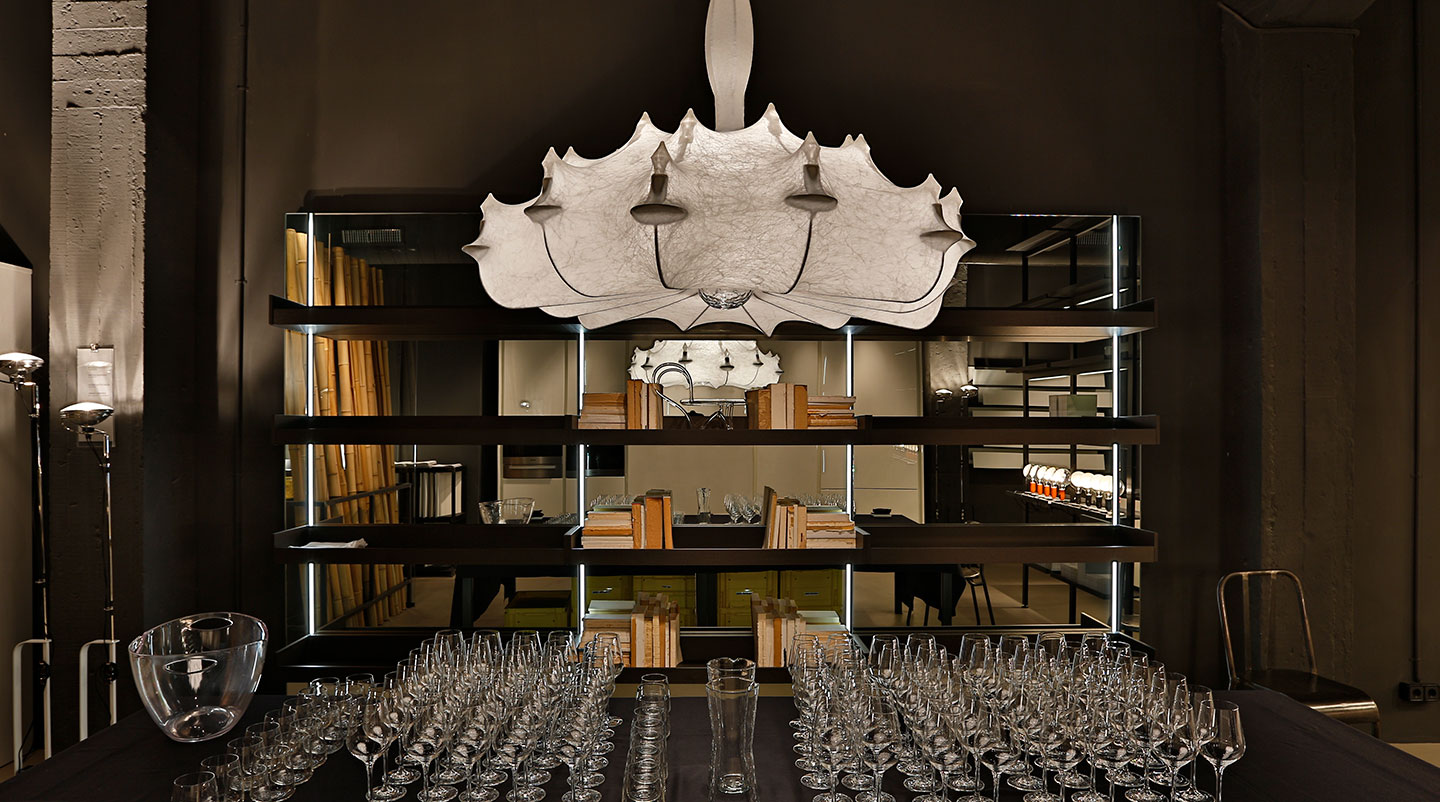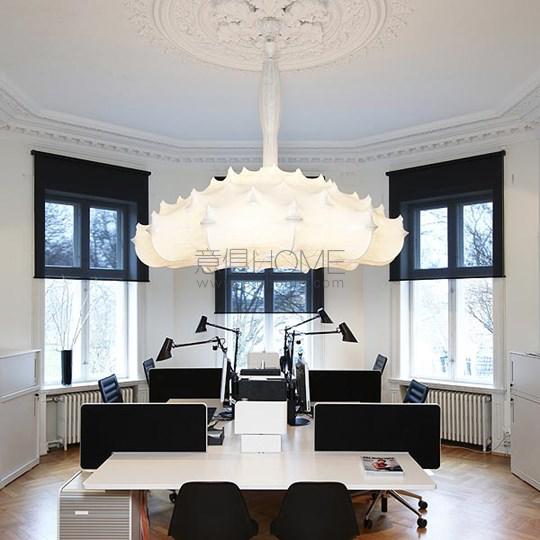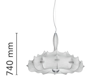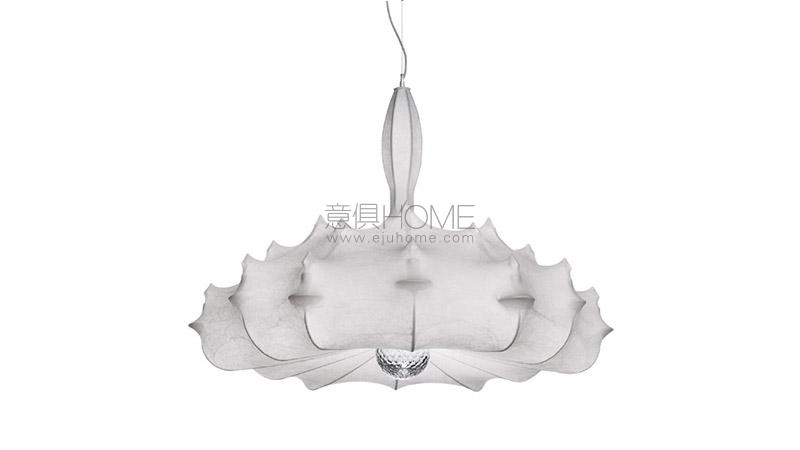 Suspension lamp providing diffused lighting. White powder coated internal steel structure sprayed with a unique "cocoon? resin to create the diffuser which is then protected by a transparent sprayed on finish.Transparent polymethylmethacrylate (PMMA) "candles?. Faceted crystal globe located at the lower center for a sparkle effect.