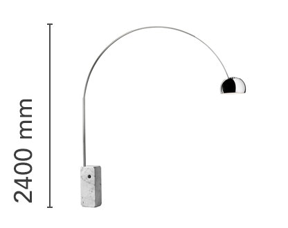 Floor lamp providing direct light. White Carrara marble base. Satin-finish stainless steel telescopic stem. Pressed, polished and zapon-varnished aluminum swiveling and height-adjustable reflector.