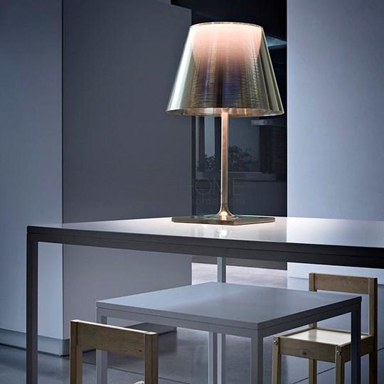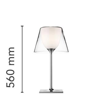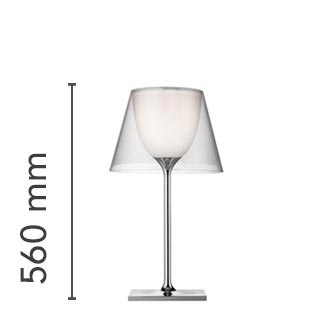 Table luminaire providing diffused lighting. Base, rod support and diffuser support in diecast, polished and chrome-plated Zamak alloy. Base cover in black injection-molded PA (Nylon). Injection-molded PC (polycarbonate) opal inner diffuser. Outer diffusers in transparent or fumèe PMMA (polymethylmethacrylate), and silver or bronze on the inner surface, by vacuum aluminum coating. Injection-molded PC (polycarbonate) upper ring, completely transparent or transparent diffuser and silver diffuser) or transparent brown for the outer bronze diffuser.