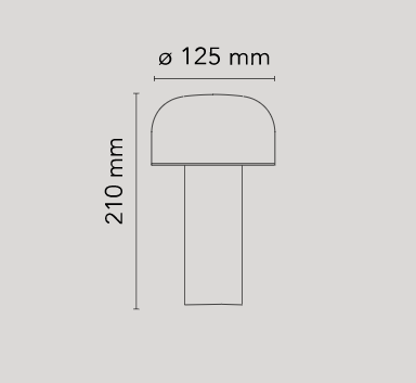 Rechargeable direct light table lighting device. Base and dome in coloured PC. Diffuser in Opaline injection moulded photo-engraved PC. 24-hours' autonomy, charging via Micro-USB-C. Push-button switch positioned on the base provides the 4-step dimmer function. Battery status indicator positioned under the base. USB-C charging cable included, useful length 120cm. USB battery charging on plug with interchangeable plugs